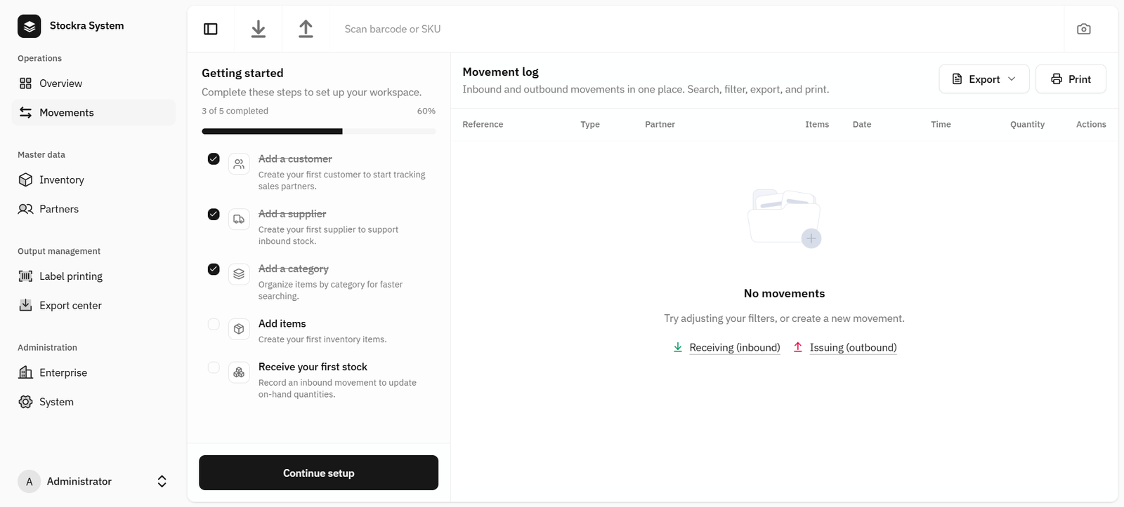 Create suppliers first if you will import or receive items frequently; it speeds up inbound movements.