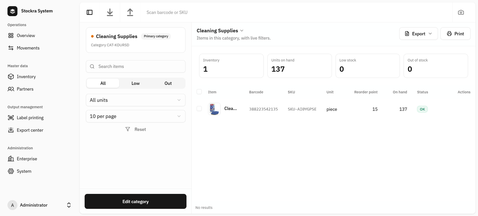 Use Category Details as a live “mini-report” for each category—especially helpful for departments like Cleaning Supplies, Beverages, Spare Parts, etc.