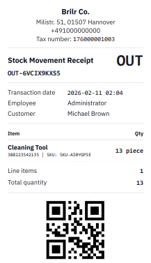 Movement reference: unique document identifier used for tracking and QR-coded on receipts.