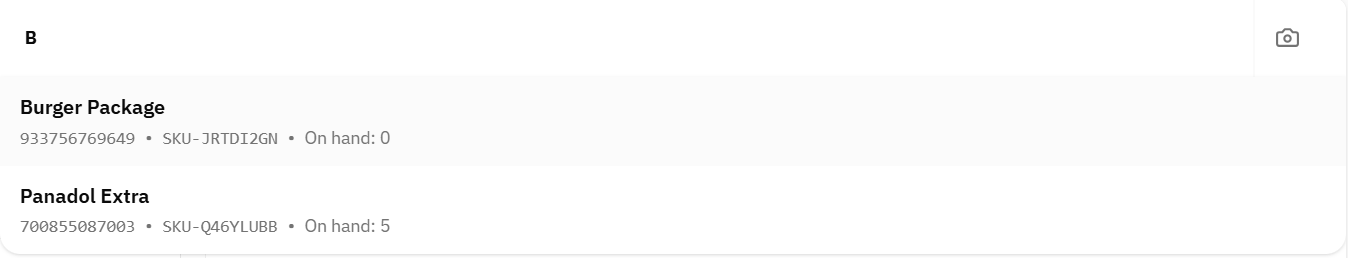 Use the search input at the top (“Scan barcode or SKU” / search field).